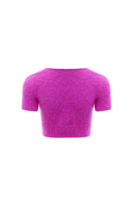 Вкорочений пухнастий кардиган в яскраво-рожевому кольорі