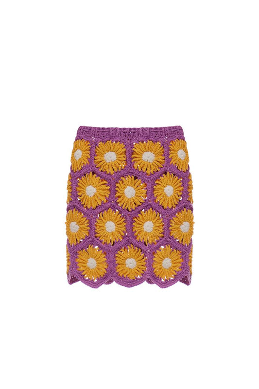 В'язана Квітчаста Міні Спідниця У Фіолетово-Помаранчевому Кольорі