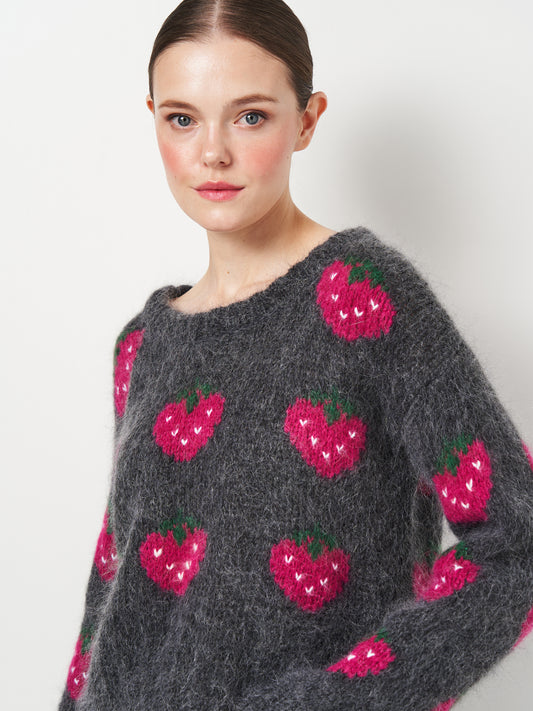 Сірий Маренговий Светр "Полуниці"