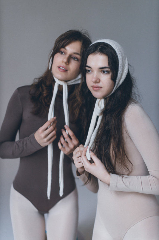 Світло-коричнева В’язана Бонетка на Зав’язках