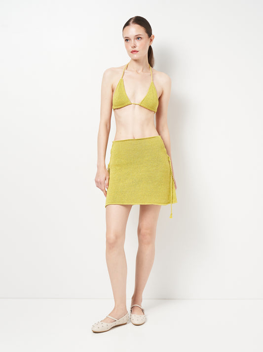 Виблискуюча Яскрава Лаймова В'язана Міні Спідниця