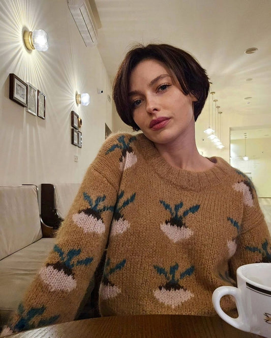 Темно-бежевий светр з бурячками