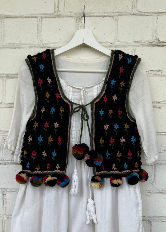 Чорна Етнічна Жилетка з Вишивкою та Помпонами