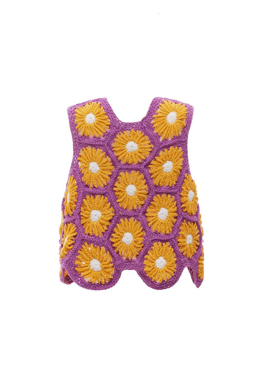 В'язана Квітчаста Жилетка У Фіолетово-Помаранчевому Кольорі