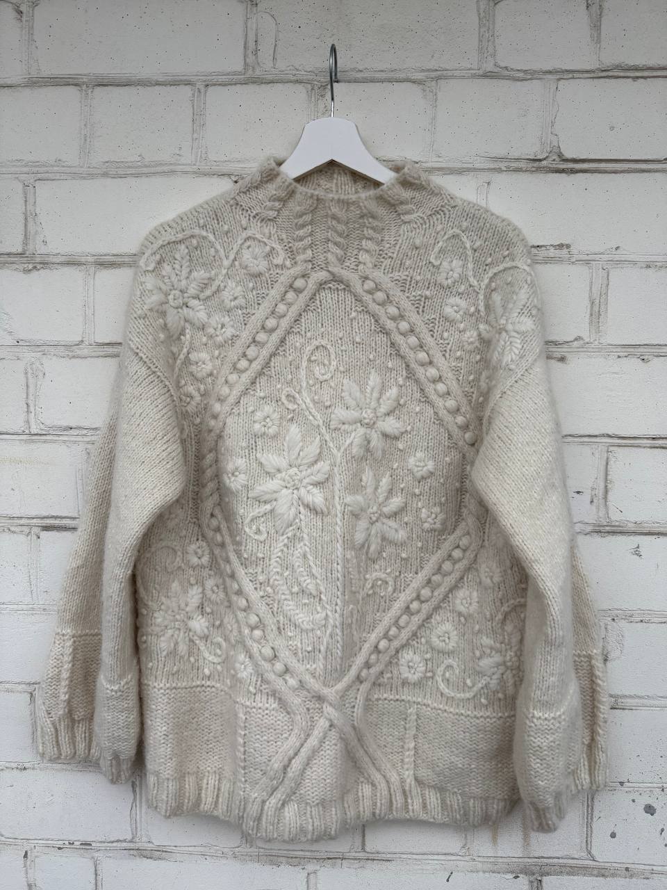 Натхненний вінтажними светрами з квітковими мотивами та елегантністю вічного дизайну, цей виріб поєднує в собі витонченість, ніжність і свободу одночасно. Кожна петля і кожен вишитий стібок - це свідчення ручної майстерності, що втілює як вишуканість, так і радість легких, плавних форм.