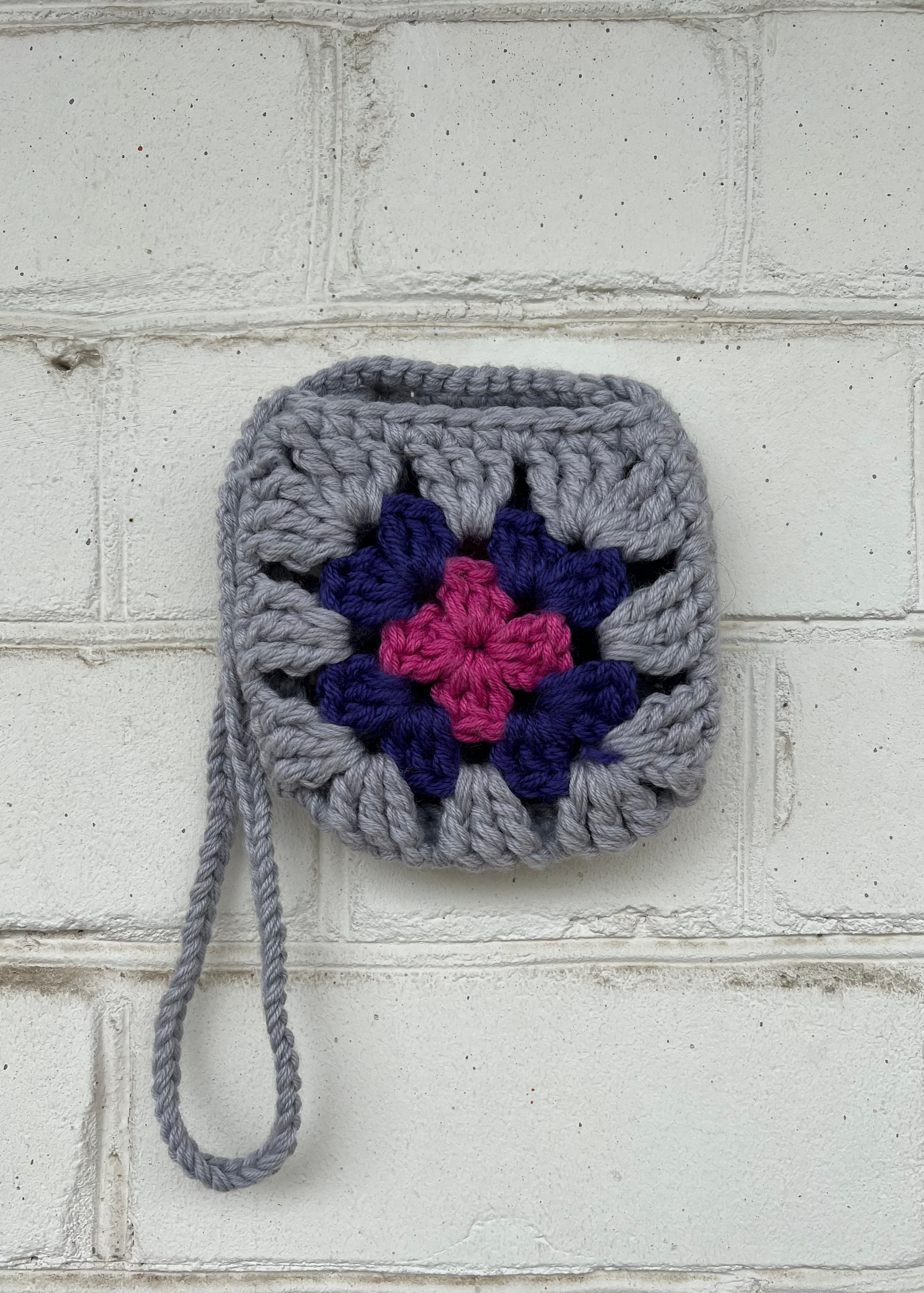 «Бабусині квіти» — колекція в’язаних гачком сумок, натхненна ніжністю спогадів та красою квітів. Кожна з них маленька, наївна та щира. Створені з любов’ю та із залишків пряжі, ці барвисті квадратні сумки втілюють турботу, свідоме споживання та теплі емоції.