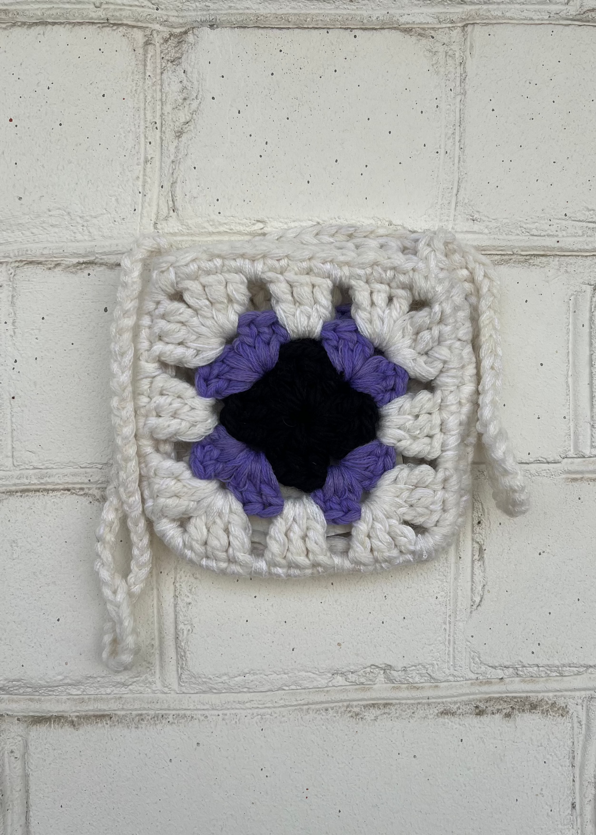 Невелика квадратна сумочка, виготовлена вручну з залишкової пряжі — смілива й природна, мов фіолетова квасоля, що тягнеться до сонця. Поєднання насиченого синього, фіолетового, білого та природних відтінків передає багату красу пізнього літнього саду, сповненого життя, фактур і тепла.
