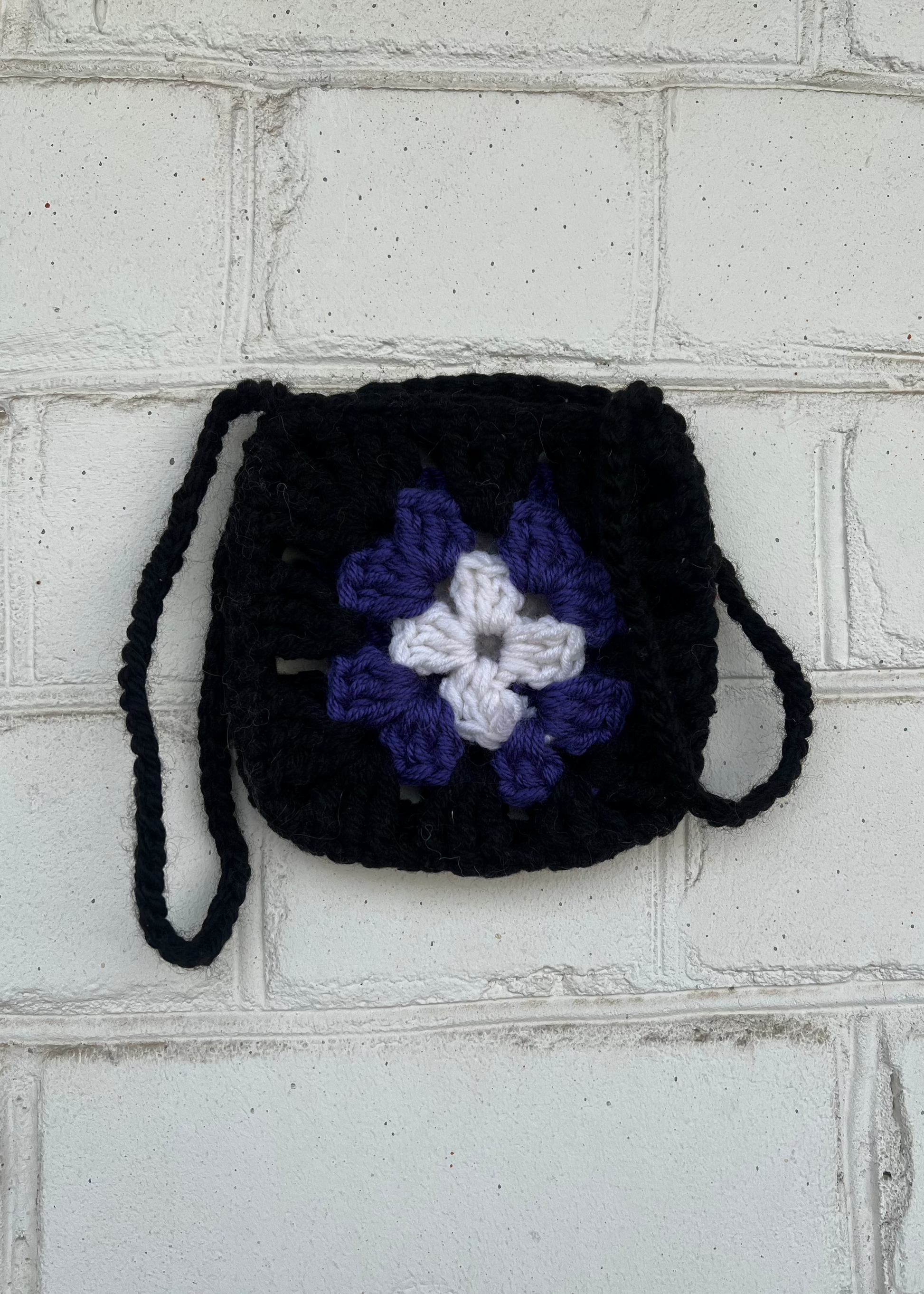 Невелика квадратна сумочка, виготовлена вручну з залишкової пряжі — смілива й природна, мов фіолетова квасоля, що тягнеться до сонця. Поєднання насиченого синього, фіолетового, білого та природних відтінків передає багату красу пізнього літнього саду, сповненого життя, фактур і тепла.